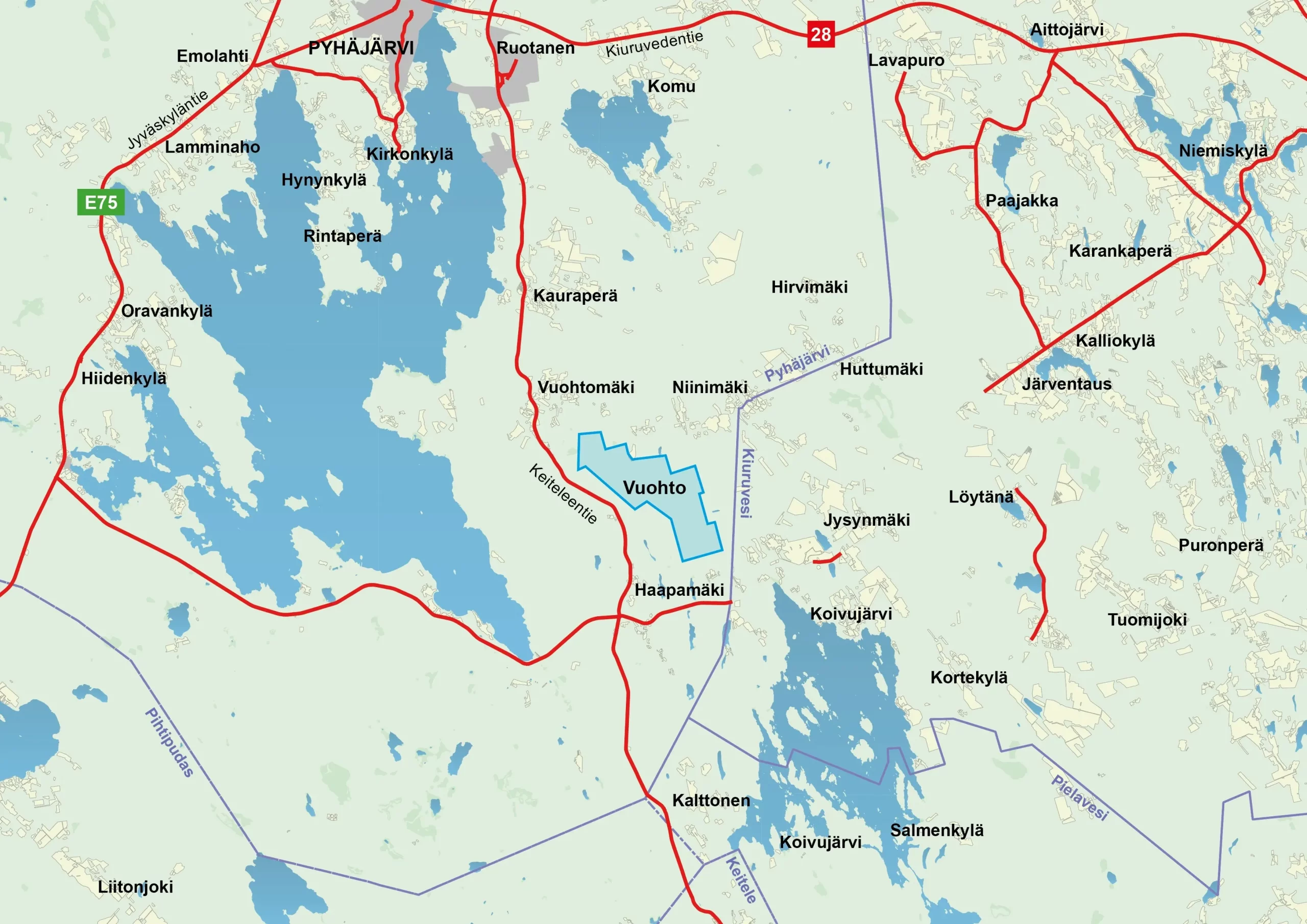 Hankealue sijaitsee Pyhäjärvellä, noin 15 kilometriä Pyhäjärven taajamasta kaakkoon. Alueelle suunnitellaan kahdeksan tuulivoimalan rakentamista.